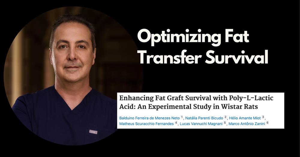 This study design assessed whether enhancement of a fat transfer volume with PLLA poly-lactic acid could increase survival. Researchers first transferred fat using a rat model and compared the viability of the fragmented fat with Group 3 which combined the fat with PLLA in a one to one ratio.